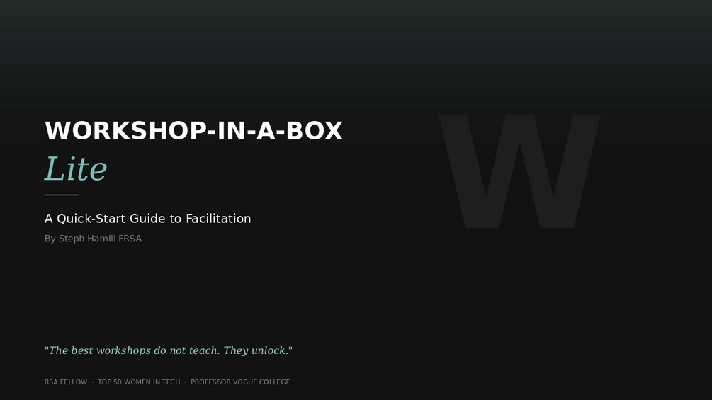 An 8-page quick-start guide to facilitation. Covers the Workshop Triangle framework, activity design principles, energy management, and essential techniques for running workshops that actually work.